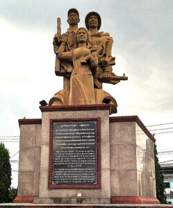 Situated in the centre of a roundabout where seven roads converge, a timely reminder of the Salt Workers in Kampot. Hard work in all weathers may they always be appreciated.