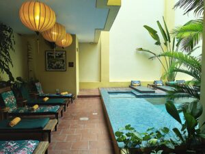 Converted with care and considerable attention to detail, from the original 1930s theatre and subsequent cinema. It offers a range of nicely appointed guest rooms and public areas. There is also a restaurant, bar and swimming pool. Non-residents can check public access with the owners. Quite an oasis coming off the busy thoroughfare, not far from the Durian Roundabout.